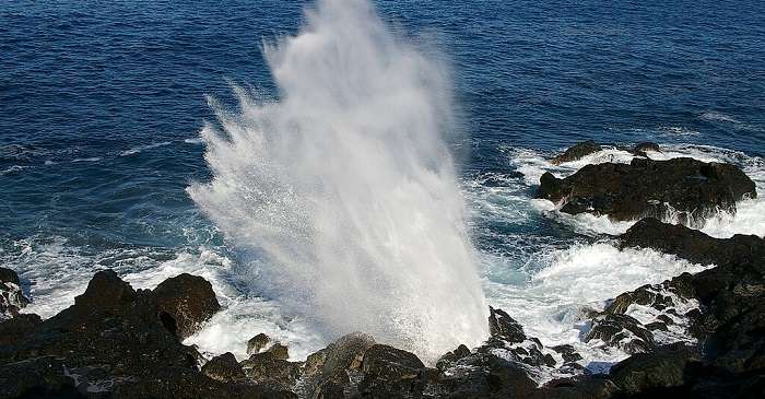 Le Souffleur is a natural blowing hole in the south of Mauritius and one of the most attractive sites that produced great water spouts during the sea turbulence.